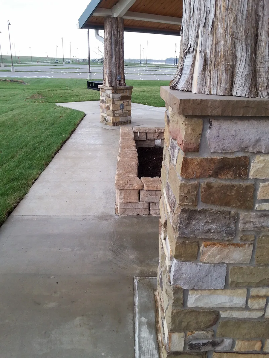 This project was a design build pavilion complex for the City of St. Peters, MO. This project consisted of site grading, site drainage, site power, stone columns and planters, furnish and installation of three pavilions, one of which was a unique concept design that had never been constructed.