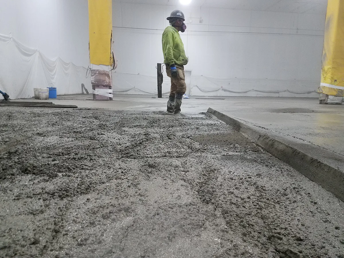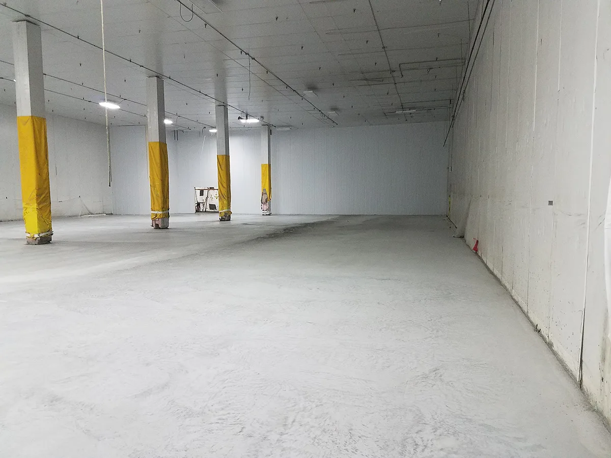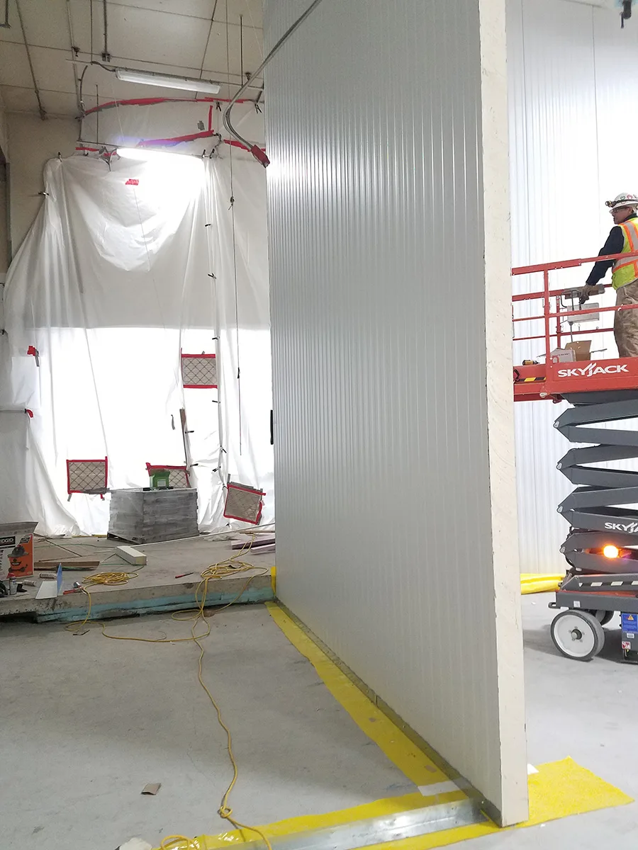 After the existing freezer at this facility failed, our team was brought in to remodel. We tore down the existing wall and replaced it with a new insulated metal panel. We also tore out the existing slab and insulation, and our team replaced the glycol heat system.
