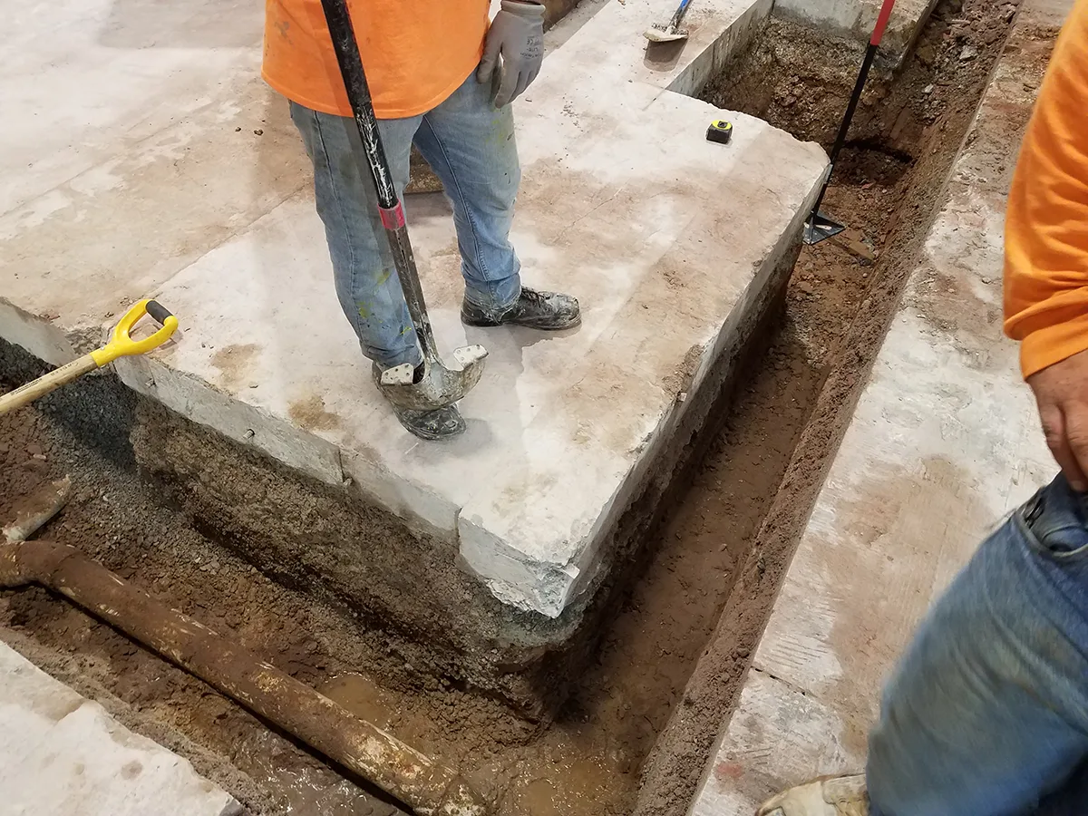 During phase two, we installed new walls, excavated soil, installed new plumbing and poured the concrete.