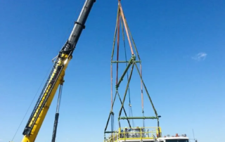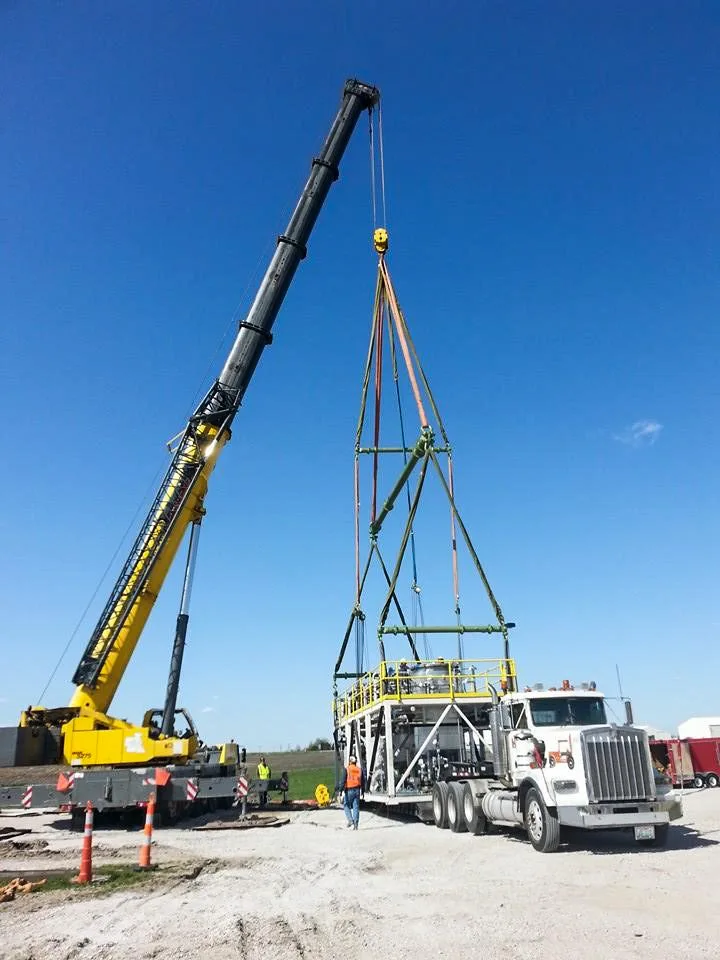 When the three skids were delivered to the site, we provided the knowledgeable and trained millwrights to unload the 120,000-pound structures and place them on the foundation.